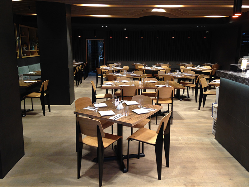 The chairs are also made of light - colored wood, matching the tables. They have a modern design with clean lines and a slightly curved backrest for comfort.