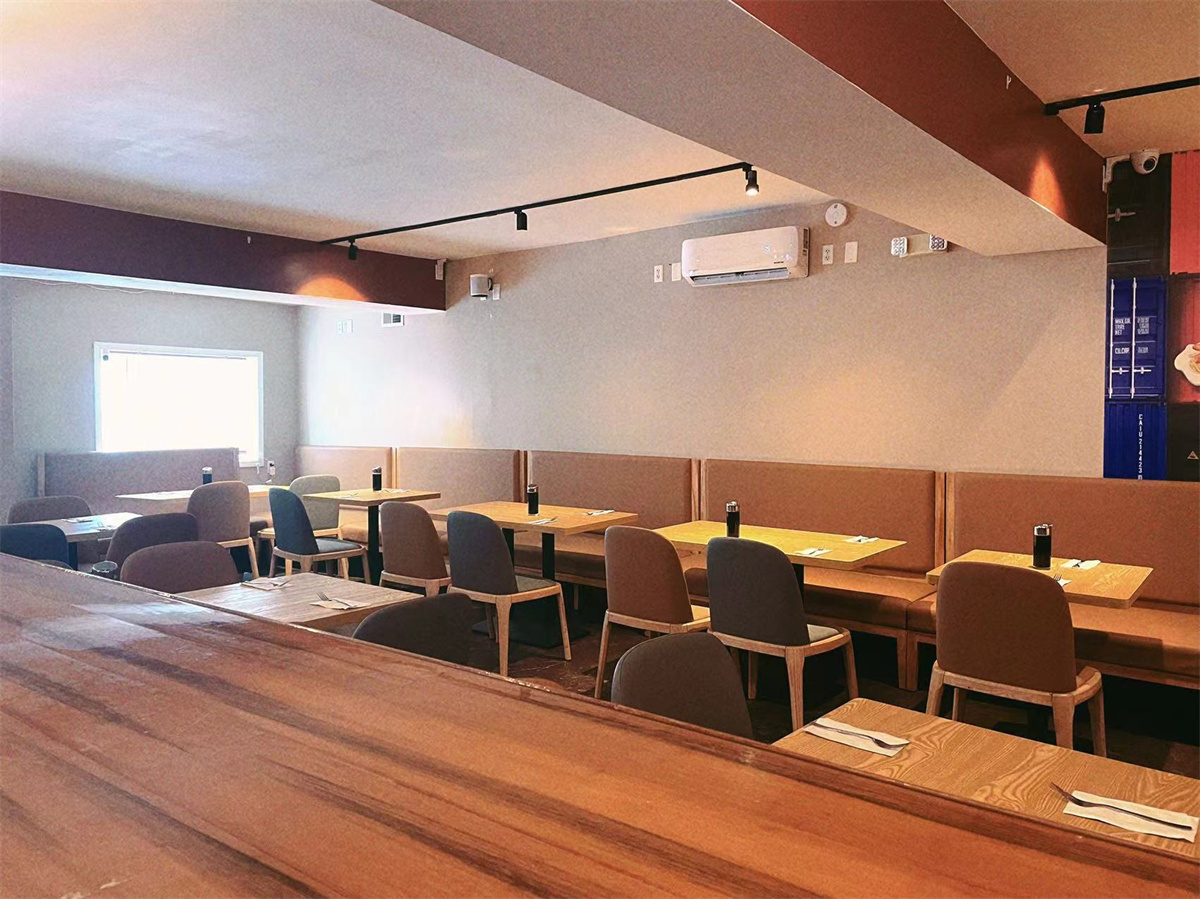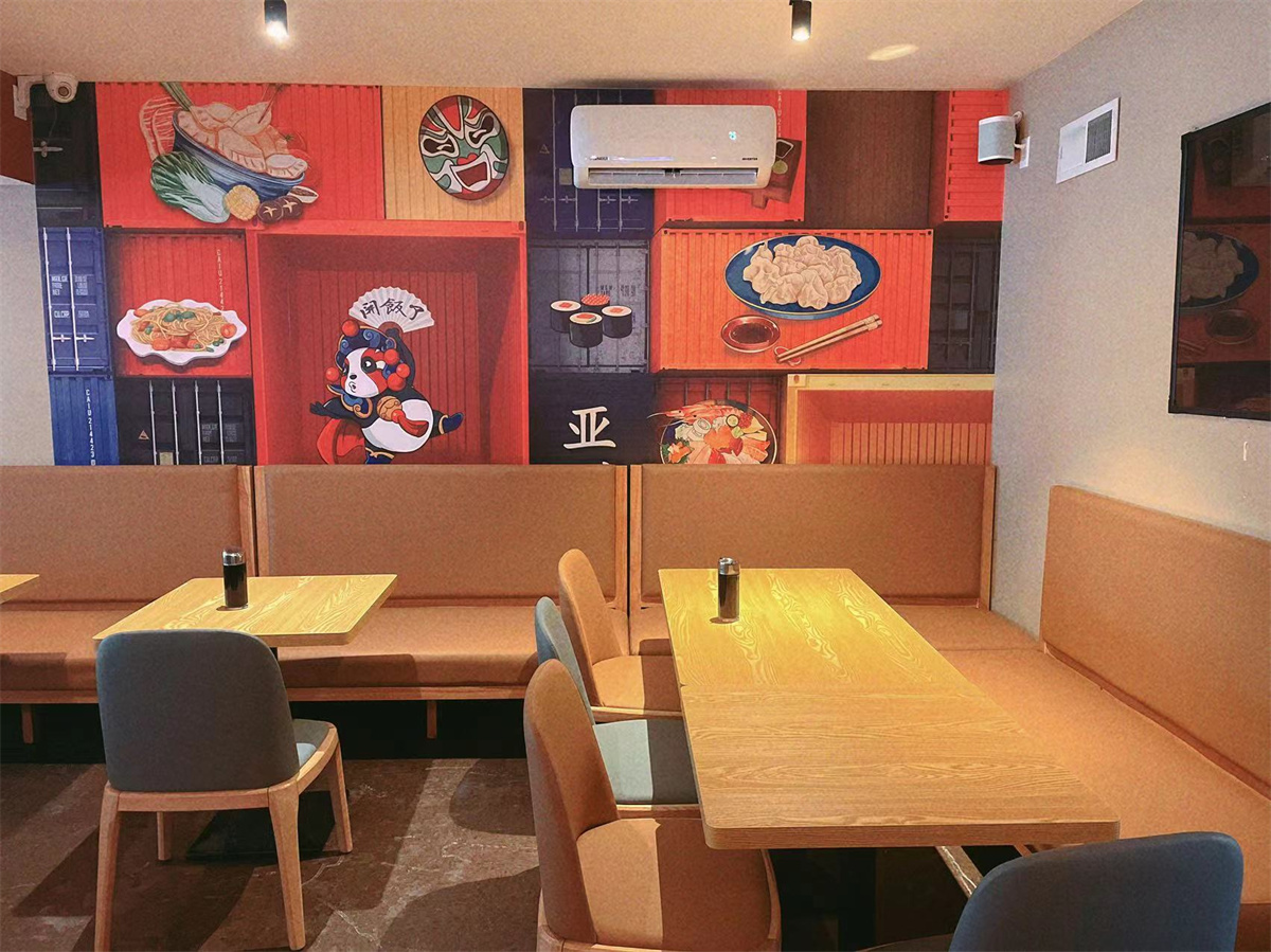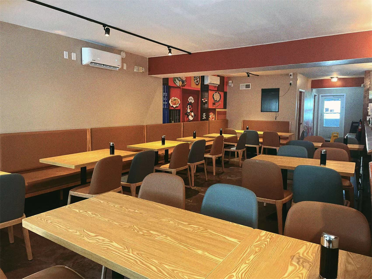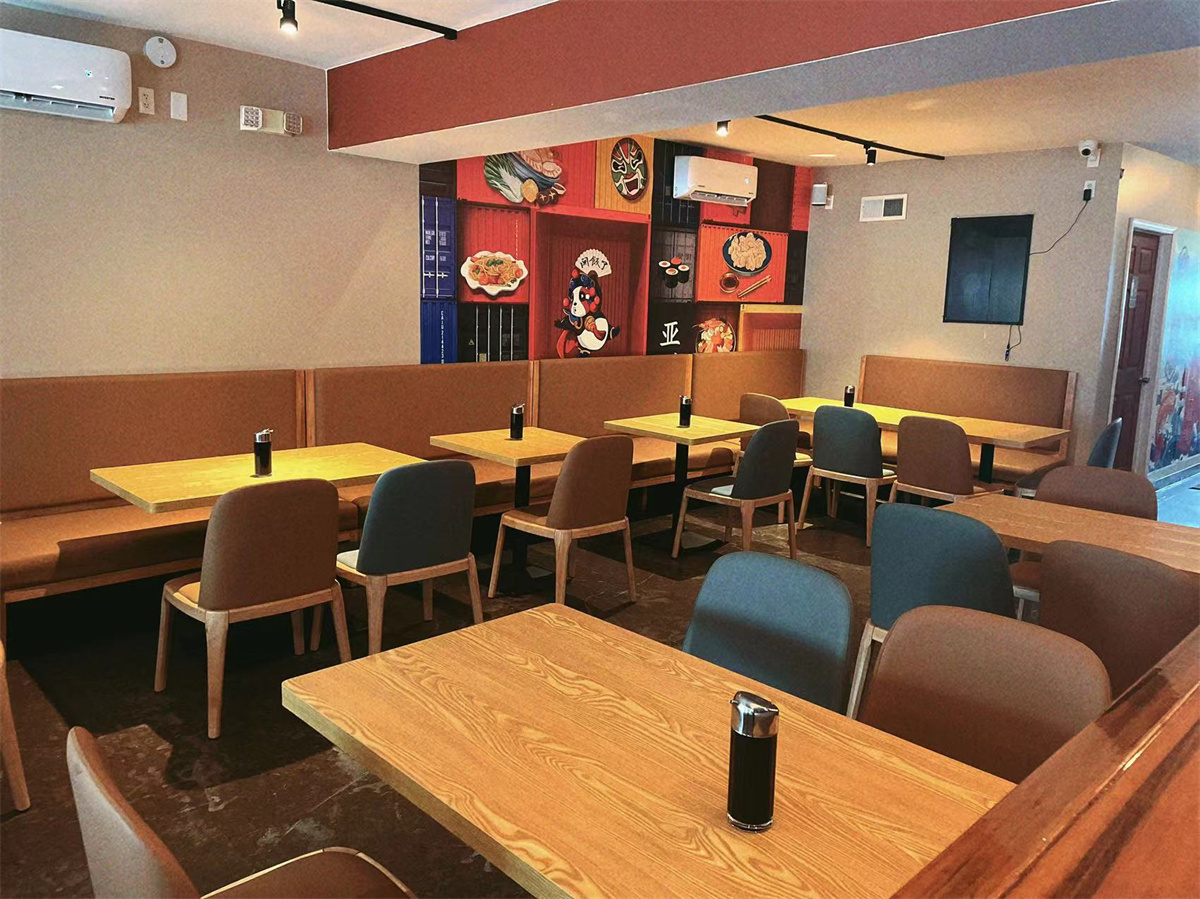 The dining tables in the Chinese restaurant usually come in various sizes and shapes to accommodate different numbers of guests. They are often made of solid wood, like mahogany or oak, which gives them a sturdy and elegant look. The tabletops are polished smoothly, making it easy to clean up any