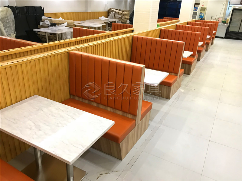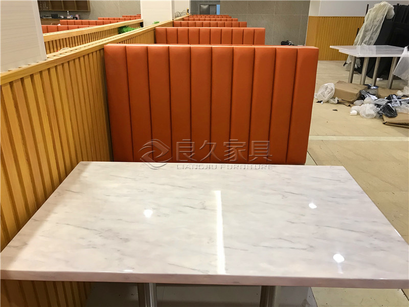 The table has a sleek, modern design with a white marble - like surface. This type of tabletop is not only visually appealing but also easy to clean, which is essential for a restaurant setting.