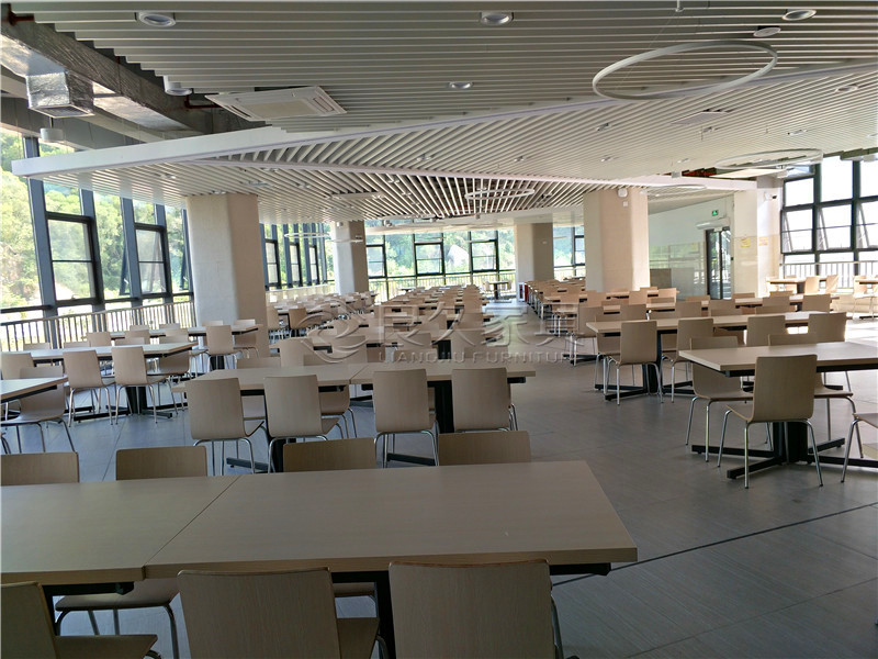 Functionality: The primary goal is to provide furniture that meets the practical needs of students and staff during meal times. This includes having tables and chairs that are suitable for eating, studying, or having conversations. For example, the tables need to be of an appropriate size to hold