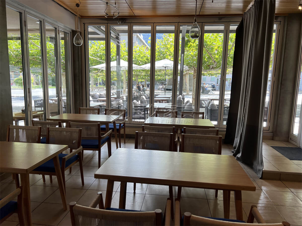 The chairs in Swiss Moretti Bistro are designed with comfort in mind. They are typically upholstered with soft, durable fabrics in warm colors like deep reds, earthy browns, or muted greens that complement the overall cozy atmosphere. The frames are made of sturdy wood or metal, ensuring stability.