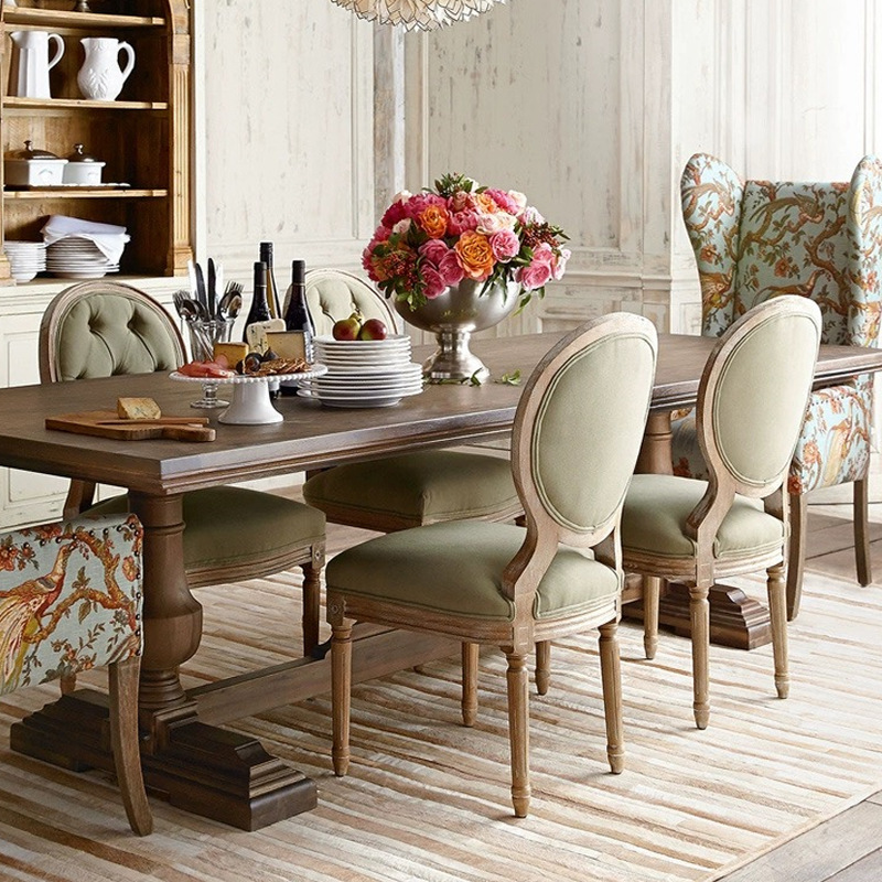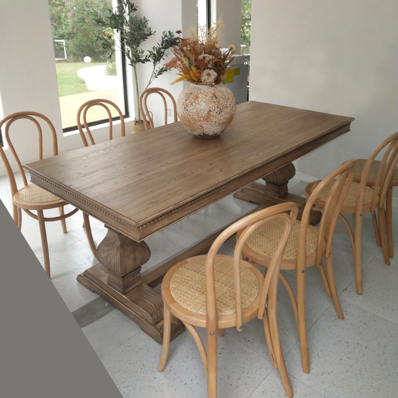 French retro solid wood tables and chairs